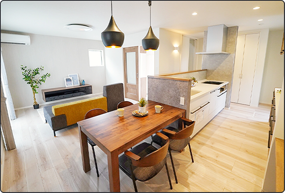 いいとこどりシンプルホームの分譲住宅は設計士、コーディネーターが考え抜いた人気の間取り・仕様の詰め合わせ。注文住宅を主とするヤマカ木材グループだからこそ実現できる生活動線に配慮した間取りになっています。また、適切な場所に豊富な収納スペースも確保!注文住宅と同じ住み心地が叶う分譲住宅です。